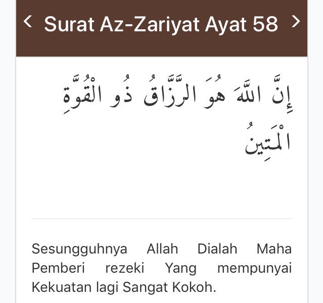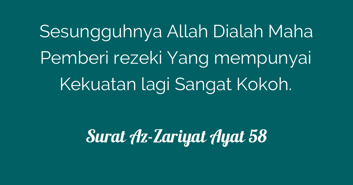 | Judul Surah: Az-Zariyat Ayat 58 Innal laaha Huwar Razzaaqu Zul Quwwatil Matiin Sungguh Allah Dialah Pemberi rezeki Yang. |
