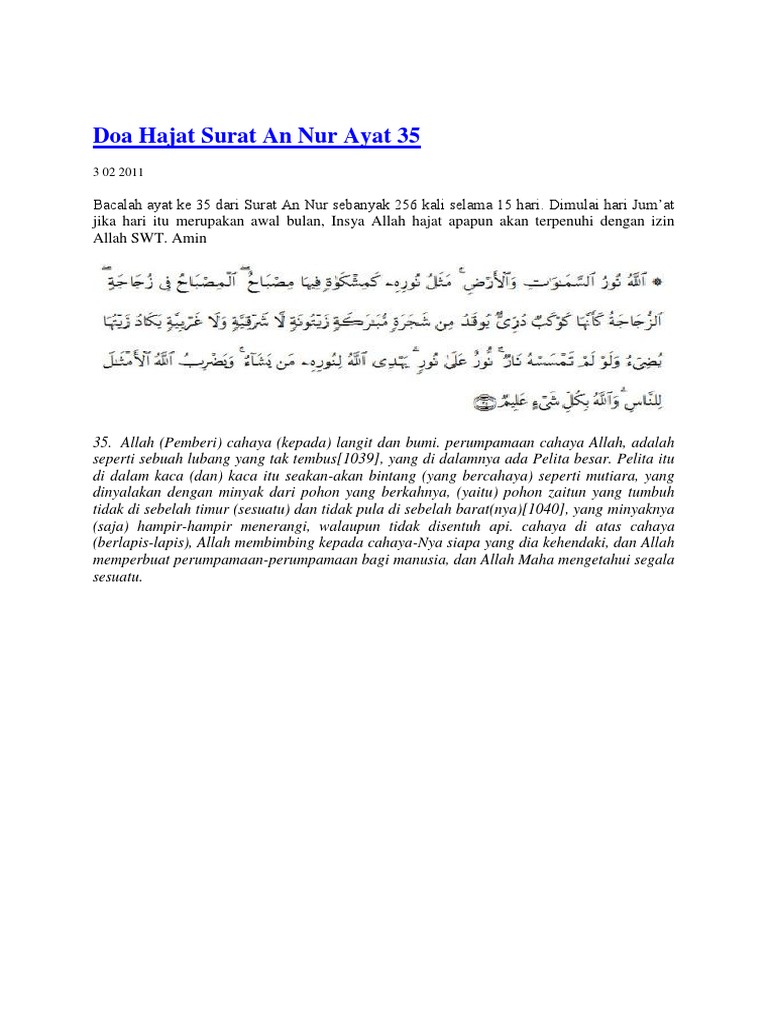 | Judul Surah: Amalan 4 Surat An Nur Ayat Ke 35 |